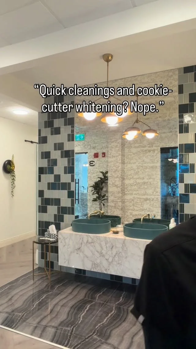 Pro Tip: You can't get your dream results without a clean base to start. That's like putting fresh paint on a dirty dusty wall! Sincerely, your dental hygienist.